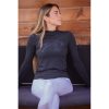 Polo d’équitation Maddie des collections Pénélope. Il est confectionné dans un tissu léger et respirant, idéal pour la pratique du sport quelle que soit la saison. En hiver, il est parfait en sous-épaisseur, à la belle saison, il permet de protéger la peau du soleil. Il est à manches longues et doté d’un petit col montant. Sur le devant, un marquage Pénélope rehaussé de strass lui donne un look chic et féminin.